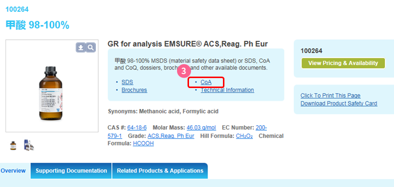 CoA 自行下載連結與說明 (Sigma Aldrich)